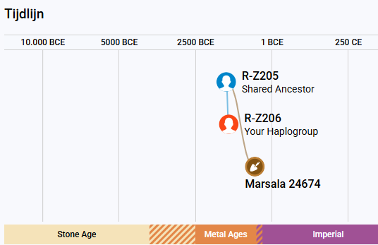 Archeologische oud Y-dna matches op SNP Z205