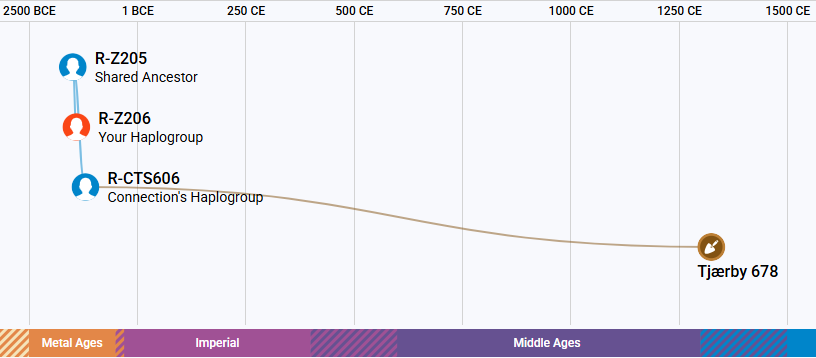 Onderstaande afbeelding is gevonden oud Y-dna in Tjaerby, Denemarken met de SNP’s R-Z205 en R-CTS606: